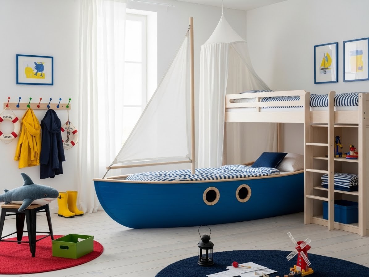 Verwandeln Sie das Kinderbett in eine Ritterburg, ein Piratenschiff oder ein Prinzessinnenschloss. Mit den passenden Stoffen und Accessoires können Sie eine fantasievolle Welt erschaffen, die Ihr Kind begeistern wird.