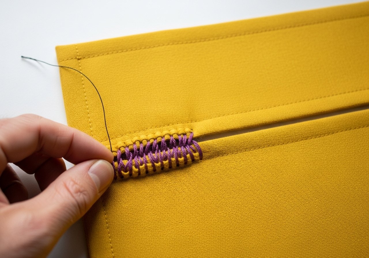 Use a blind stitch or a ladder stitch to close the gap invisibly. This ensures a seamless finish and completes the Nähtrick zum Umdrehen. The result is a professional, clean look.